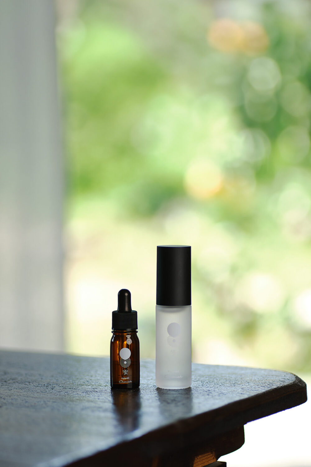 化学的なものは一切使わず、地元の契約農家で無農薬で育てられている原材料、阿蘇の湧水での蒸留、とうもろこし由来のエタノール、と安全性には徹底的にこだわっています。香りは、鼻粘膜を通して体内に吸収されるため、体にいいものだけを配合しています。