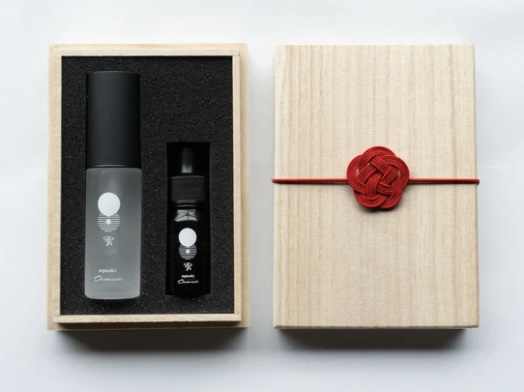 広島県産の無農薬の八朔の果皮を利用して抽出されたエッセンシャルオイルと植物性エタノールのみでつくられた100%天然のフレグランスミスト。八朔の皮から一滴ずつ抽出したという、丁寧で繊細な製法がパッケージのグラフィックに繊細に表現されており、あえて原料である八朔の表現を抑えた媚びないデザインも潔さを感じる。