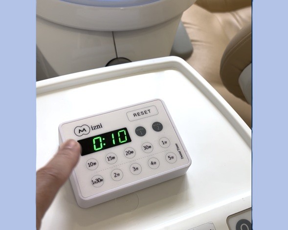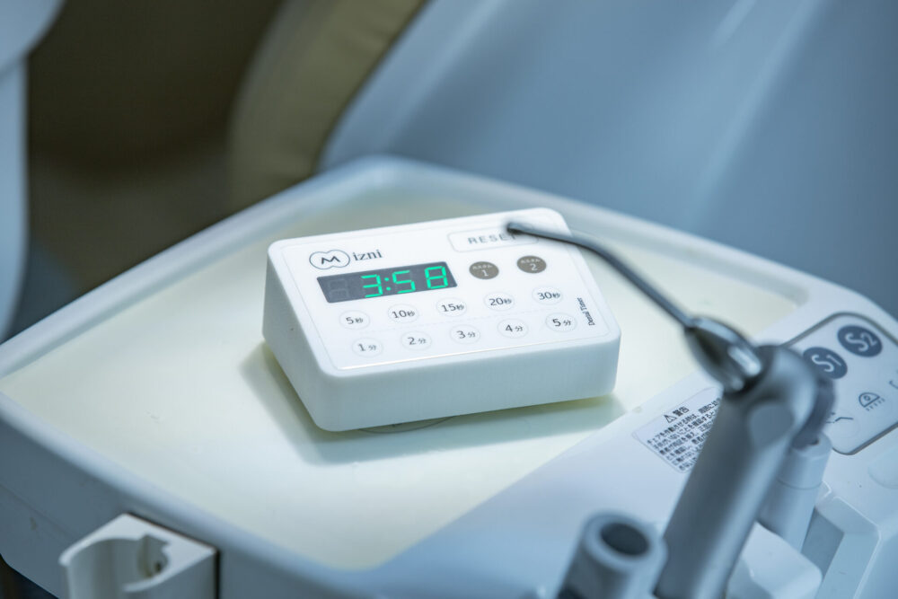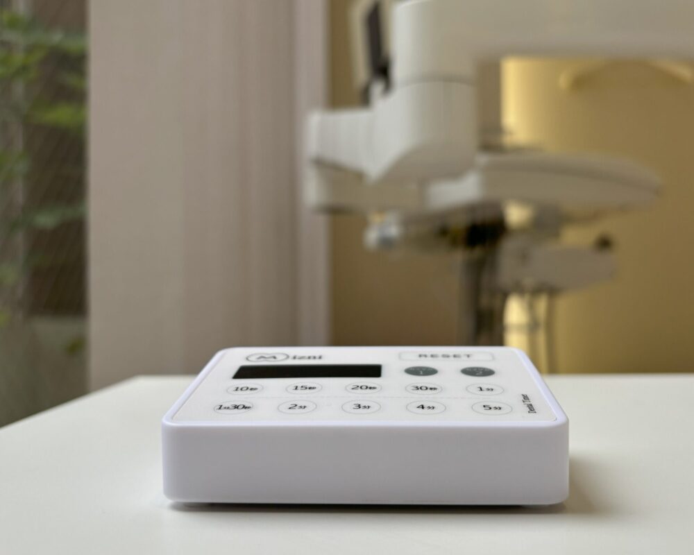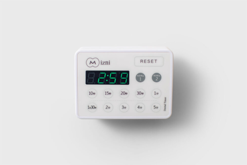 主に歯科医院で使用する診療用タイマー。従来型のタイマーと違い、歯科でよく使用する時間をパネルにプリセットし、ワンプッシュでスタート、自動で音は止まります。タイマーに触る機会を減らすことができ、またアルコール消毒が簡単にできるようパネルの凹凸をなくしているので衛生的です。