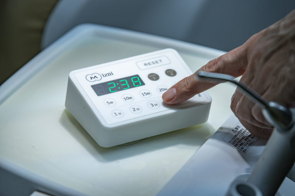 コロナ禍において清潔や消毒に関心が高まっていたころ、歯科医院で使用されるタイマーは、診療中に設定やスタートストップのために何度も触れるものの、ボタンの部分は衛生的に拭掃できないことから、衛生的に管理できるタイマーの開発を始めました。