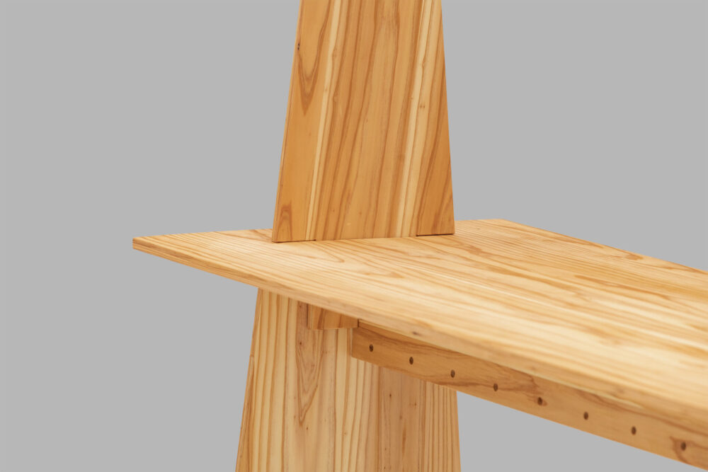 「サクラサク」が開発した杉板材から構成された軽量かつ工具不要で組み立てることができる什器。イベントの什器やアウトドア什器、緊急時の什器としても使用可能です。広島県産の皆伐材を活用した積層材を新素材として県産材の新たな活用法の提案につなげていきたいです。