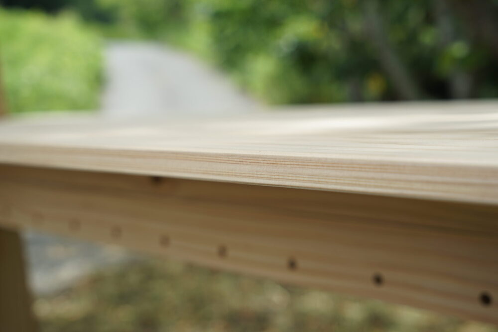 イベント出展用に分割可能で車に乗るサイズ感と工具不要で組立可能な物販台製作がきっかけでした。生産効率を上げるため、合板規格の91cm×182cmサイズの中でパズルを並べるイメージでパーツを設計し製品が生まれました。