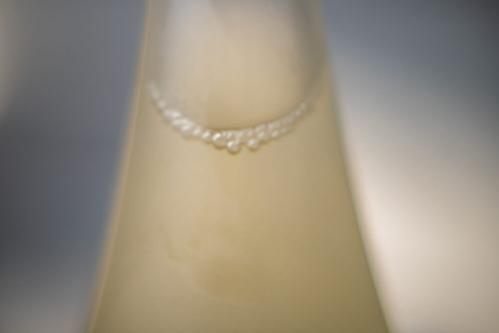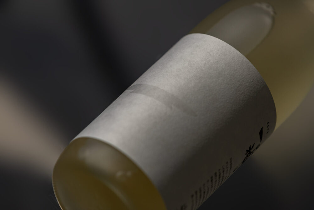 今までの日本酒にない、新たな味わいを表現できると注目されているお米「春陽」を使用しています。パッケージは白を基調としたシンプルな作りで、正面には盃のみを配置しクリア箔の箔押しでみずみずしさを表現しています。日本の伝統文化らしさを踏襲しつつも今までにない佇まいに仕上げています。