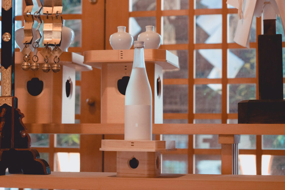 神主、農家、杜氏が手を取り合い創り上げた日本酒。「一味神水」という神前で行う儀式の意味を持つネーミングと一年一度の限定商品という価値も突き抜けた商品性を感じる。ここまでの引き算デザインは素直に美しく、名前の由来からできたデザインと言えるぐらい、神がかった印象を受け、商品としての価値を超えた目的を感じる。またデザインの過程が見事にラベルに反映されている。