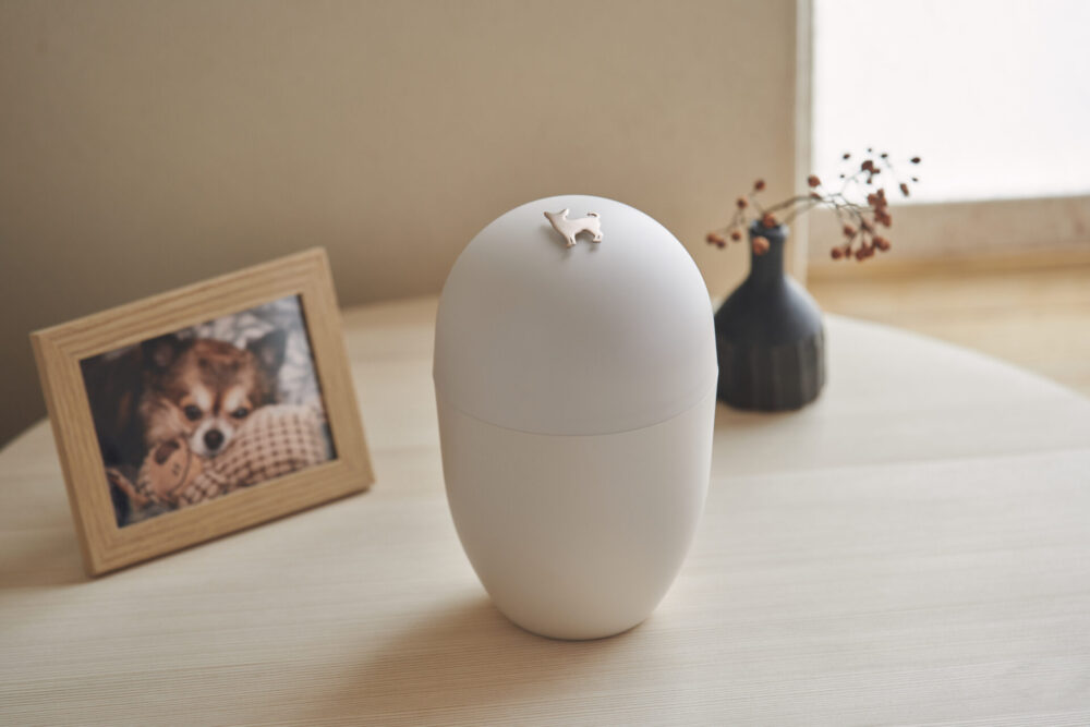 ペットの手元供養品は、これまで人の供養を基にしたものが多く見られましたが、本製品は全く異なるアプローチを採用しています。決まった供養の形式にとらわれることなく、ペットオーナーの想いを何よりも大切にした製品です。目立つ場所に飾ることも、そっとしまっておくことも、長く置いておくことも、あるいは土に還してあげることも。どのような供養であっても、「これが一番良い」と感じる方法をお選びいただけます。