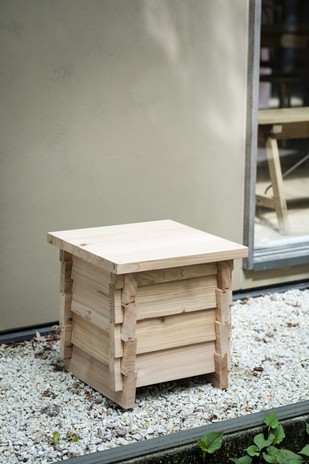広島県産間伐材と地元のリサイクル資材を活用し、生ごみから堆肥を育む。暮らしの循環、いのちの循環に思いを寄せ、日本建築の伝統的な校倉造(あぜくらづくり)より着想を得た原始的な成り立ちでありながら現代の暮らしに溶け込むコンポスト。